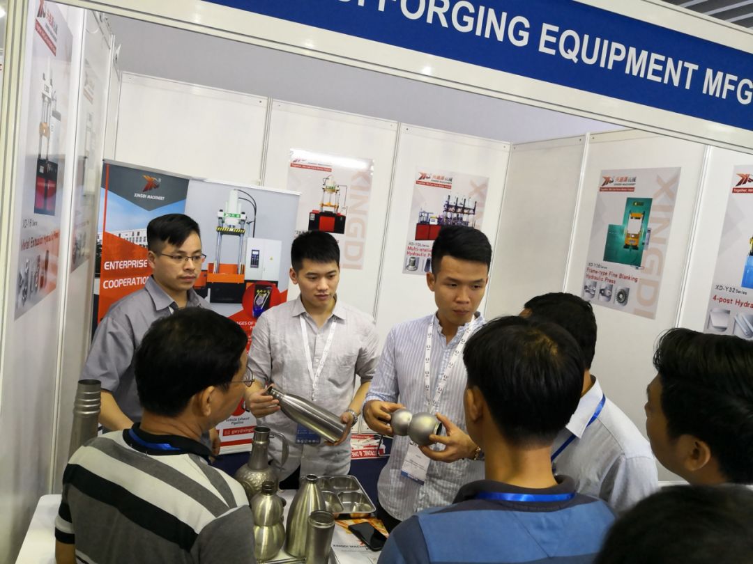 展会在西贡展览与会议中心进行,由7月3日开始,持续4天。期间我司于AF1-1A展位,与国际友人和专家进行关于金属成形技术及产品工艺的交流探讨。本次会议,我司以液压成形技术为特色,成为了展会中唯一能提供整套液压成形工艺技术的设备供应商。多家国际客户被吸引前来问询,并对我司的先进技术和智能装备生产能力表示认同与赞赏。
